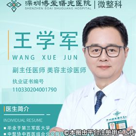 #賈維順就職醫(yī)院: 深圳博愛曙光醫(yī)療美容職稱職務(wù): 執(zhí)業(yè)醫(yī)師擅長項(xiàng)目: 面部整形、眼部整形、吸脂、自體脂脂移植填充、乳房整形等