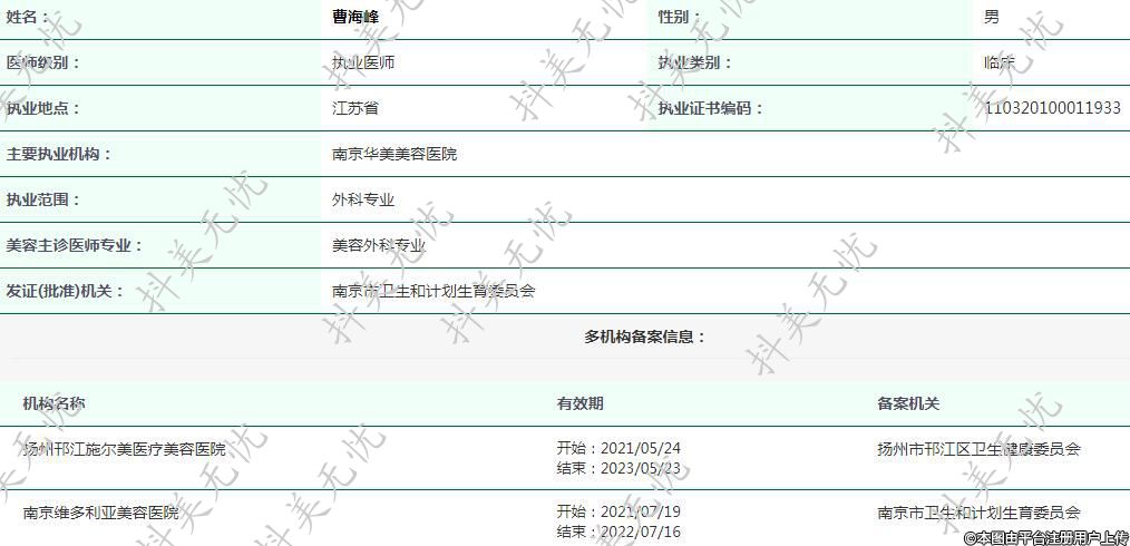 主要執(zhí)業(yè)機構:南京華美美容醫(yī)院