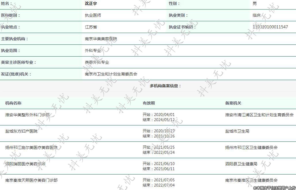 主要執(zhí)業(yè)機(jī)構(gòu):南京華美美容醫(yī)院