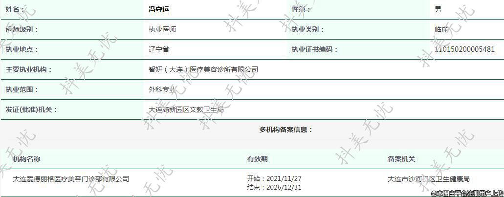 主要執(zhí)業(yè)機構(gòu):智妍(大連)醫(yī)療美容診所有限公司