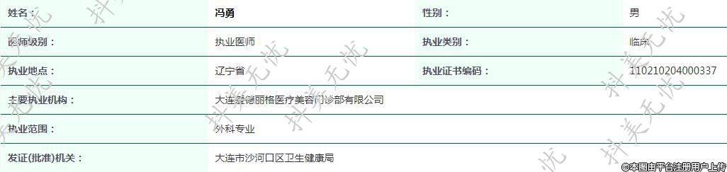 主要執(zhí)業(yè)機構(gòu):大連愛德麗格醫(yī)療美容門診部有限公司