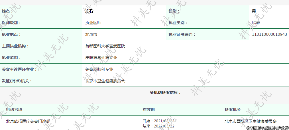 執(zhí)業(yè)范圍:皮膚病與性病專業(yè)