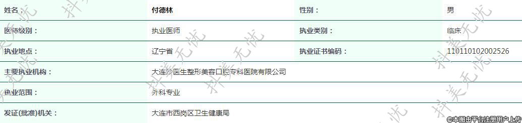 主要執(zhí)業(yè)機(jī)構(gòu):大連沙醫(yī)生整形美容口腔??漆t(yī)院有限公司