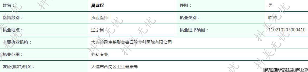 主要執(zhí)業(yè)機構(gòu):大連沙醫(yī)生整形美容口腔??漆t(yī)院有限公司