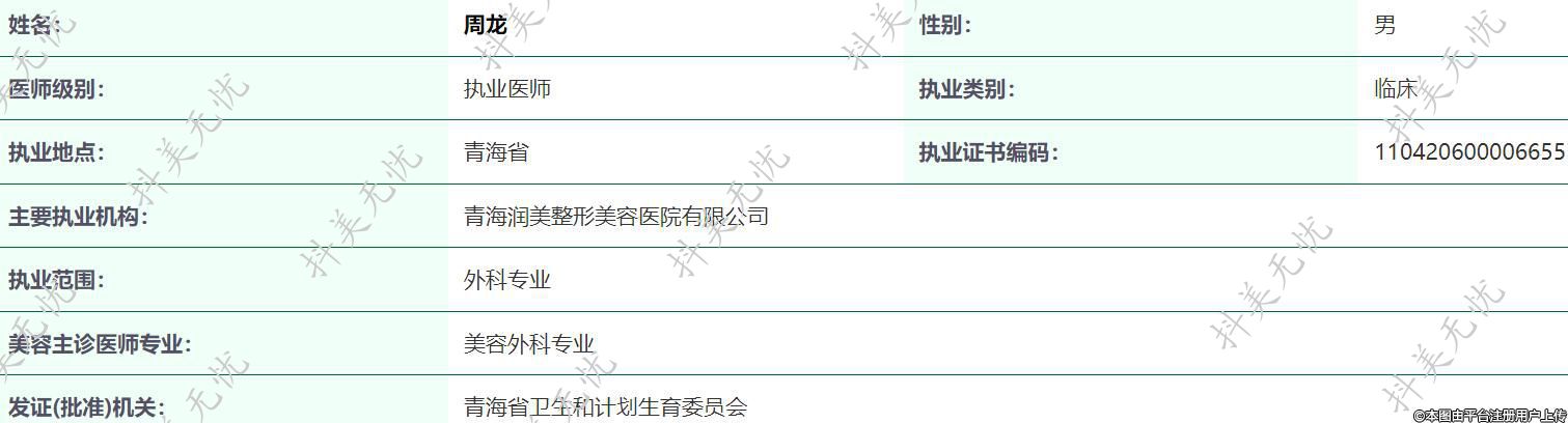 主要執(zhí)業(yè)機(jī)構(gòu):青海潤美整形美容醫(yī)院有限公司