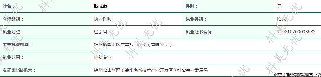 主要執(zhí)業(yè)機構(gòu):錦州斯美諾醫(yī)療美容門診部(有限公司)