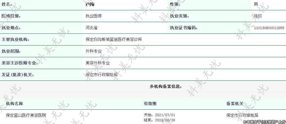 主要執(zhí)業(yè)機構(gòu):保定白溝新城藍(lán)途醫(yī)療美容診所