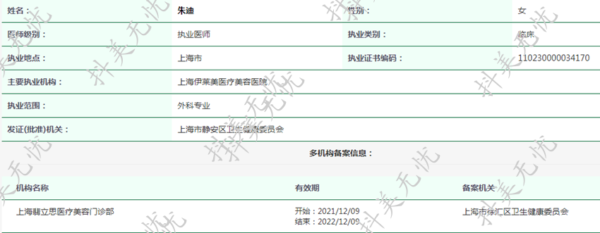 主要執(zhí)業(yè)機(jī)構(gòu):上海伊萊美醫(yī)療美容醫(yī)院