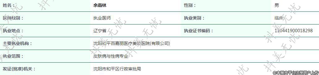 主要執(zhí)業(yè)機構:沈陽和平百嘉麗醫(yī)療美容醫(yī)院(有限公司)