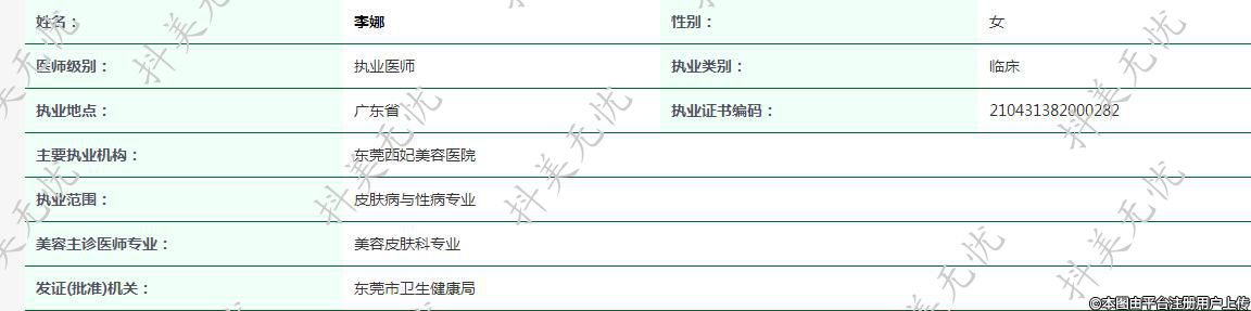 主要執(zhí)業(yè)機(jī)構(gòu):東莞西妃美容醫(yī)院