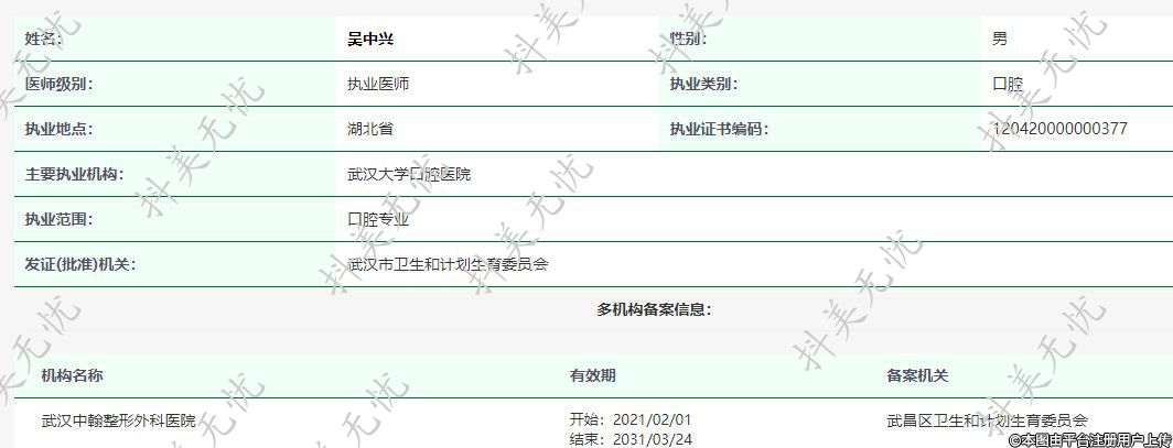 主要執(zhí)業(yè)機(jī)構(gòu):武漢大學(xué)口腔醫(yī)院