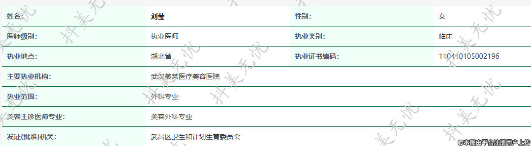 主要執(zhí)業(yè)機(jī)構(gòu):武漢美萊醫(yī)療美容醫(yī)院