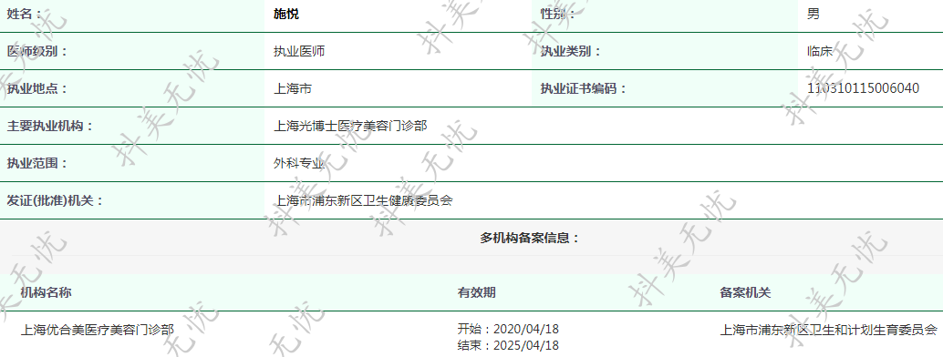 現(xiàn)就職于上海光博士醫(yī)療美容門診部
