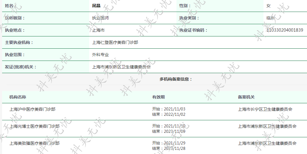 主要執(zhí)業(yè)機(jī)構(gòu):上海仁登醫(yī)療美容門(mén)診部