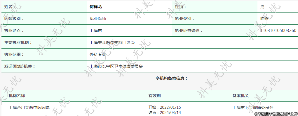 主要執(zhí)業(yè)機構(gòu):上海美萊醫(yī)療美容門診部