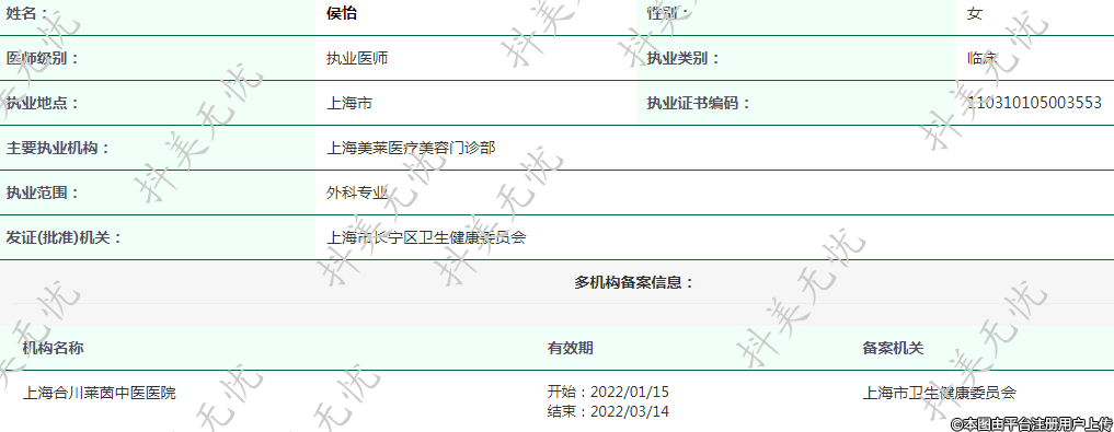 主要執(zhí)業(yè)機構(gòu):上海美萊醫(yī)療美容門診部