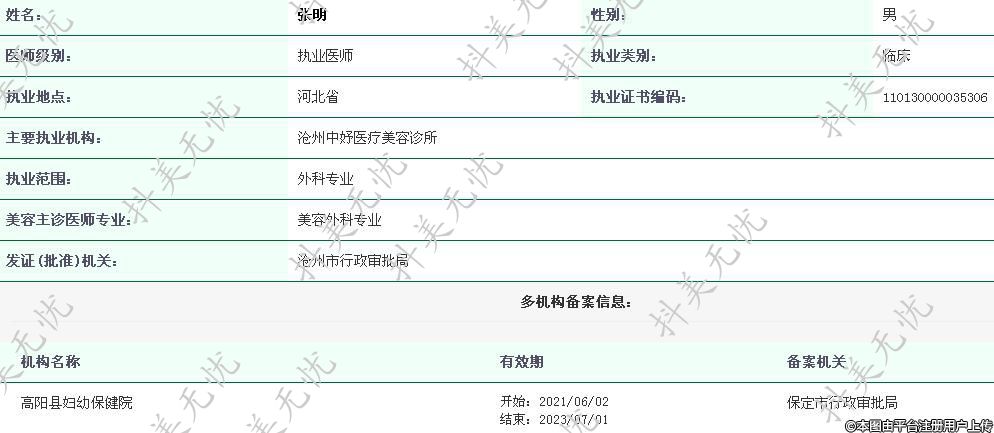 主要執(zhí)業(yè)機構(gòu):滄州中妤醫(yī)療美容診所