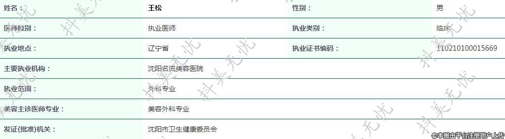 主要執(zhí)業(yè)機構(gòu):沈陽名流美容醫(yī)院