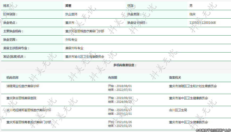 主要執(zhí)業(yè)機(jī)構(gòu):重慶鄭荃麗格醫(yī)療美容門(mén)診部