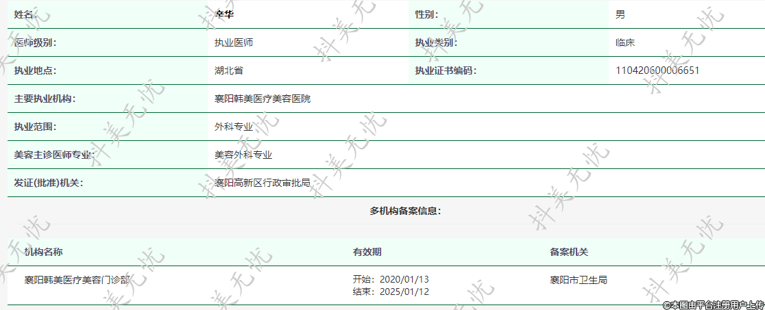 主要執(zhí)業(yè)機構(gòu):襄陽韓美醫(yī)療美容醫(yī)院
