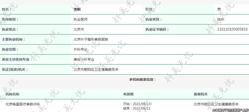 主要執(zhí)業(yè)機(jī)構(gòu):北京葉子整形美容醫(yī)院