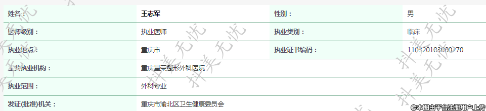 主要執(zhí)業(yè)機(jī)構(gòu):重慶星榮整形外科醫(yī)院