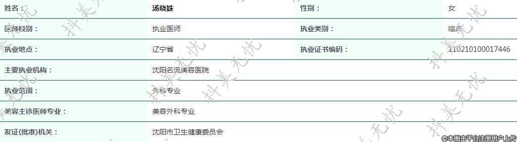 主要執(zhí)業(yè)機構(gòu):沈陽名流美容醫(yī)院