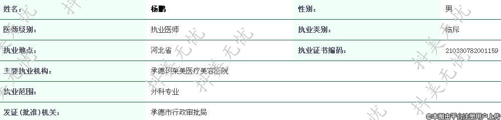 主要執(zhí)業(yè)機構(gòu):承德玥萊美醫(yī)療美容醫(yī)院