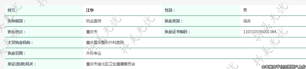 主要執(zhí)業(yè)機構(gòu):重慶星榮整形外科醫(yī)院