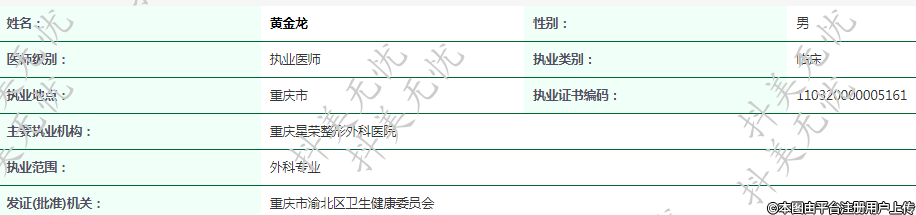 主要執(zhí)業(yè)機構(gòu):重慶星榮整形外科醫(yī)院