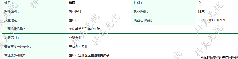 主要執(zhí)業(yè)機(jī)構(gòu):重慶美萊整形美容醫(yī)院