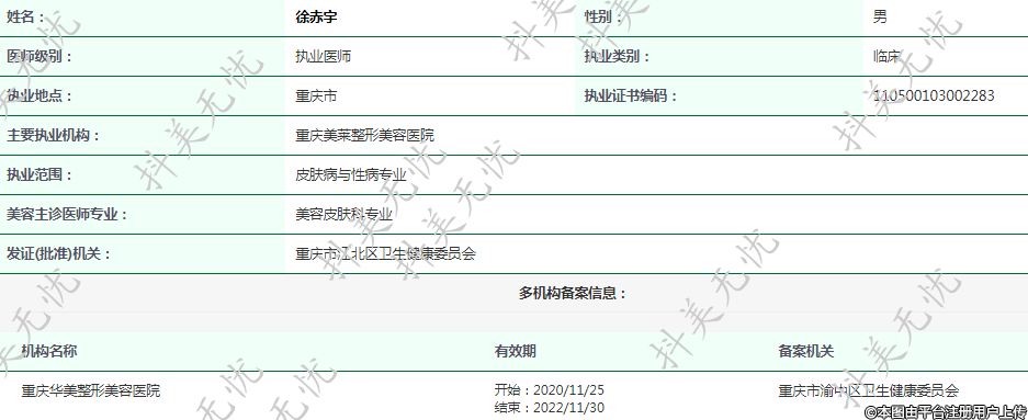 主要執(zhí)業(yè)機構(gòu):重慶美萊整形美容醫(yī)院