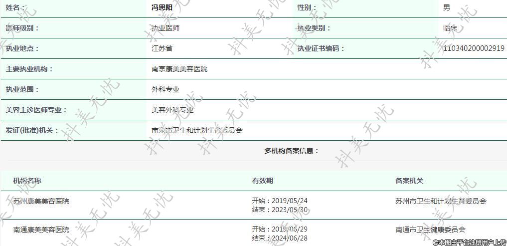 主要執(zhí)業(yè)機(jī)構(gòu):南京康美美容醫(yī)院