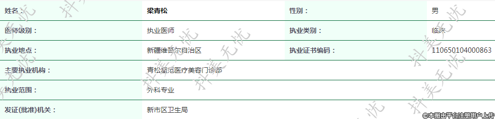 主要執(zhí)業(yè)機構(gòu):青松星范醫(yī)療美容門診部