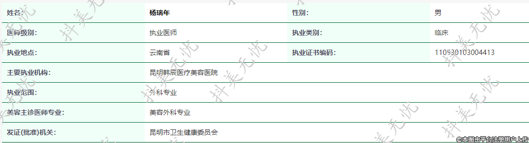 主要執(zhí)業(yè)機構:昆明韓辰醫(yī)療美容醫(yī)院