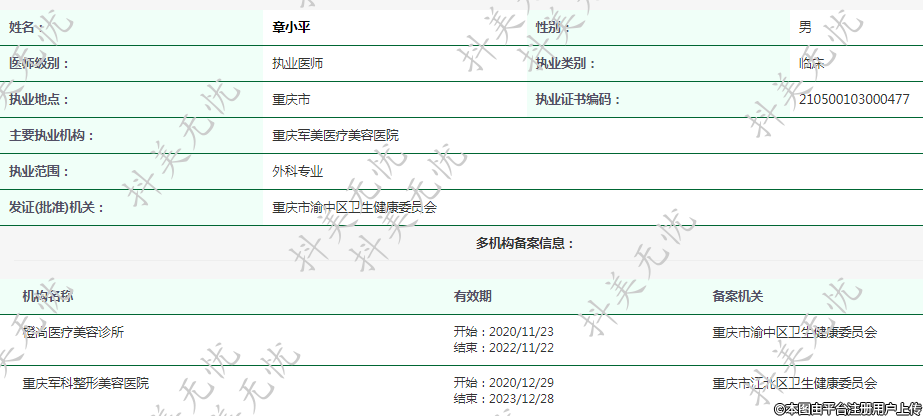 主要執(zhí)業(yè)機構:重慶軍美醫(yī)療美容醫(yī)院