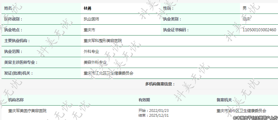 主要執(zhí)業(yè)機(jī)構(gòu):重慶軍科整形美容醫(yī)院
