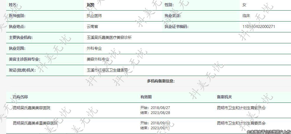 主要執(zhí)業(yè)機(jī)構(gòu):玉溪吳氏嘉美醫(yī)療美容診所