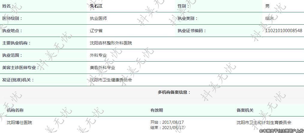 主要執(zhí)業(yè)機構:沈陽杏林整形外科醫(yī)院