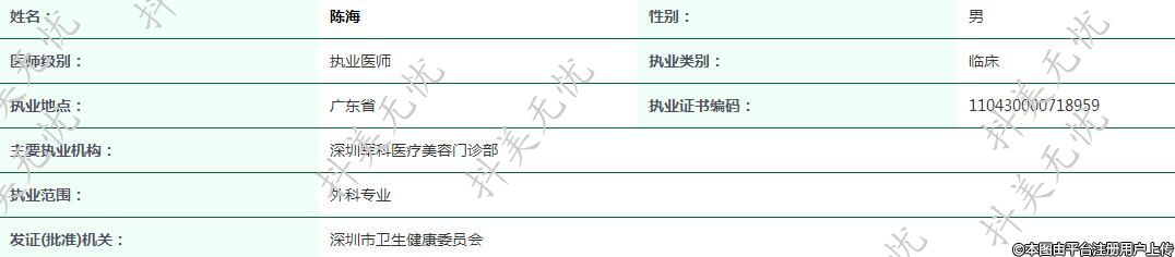 主要執(zhí)業(yè)機(jī)構(gòu):深圳軍科醫(yī)療美容門(mén)診部