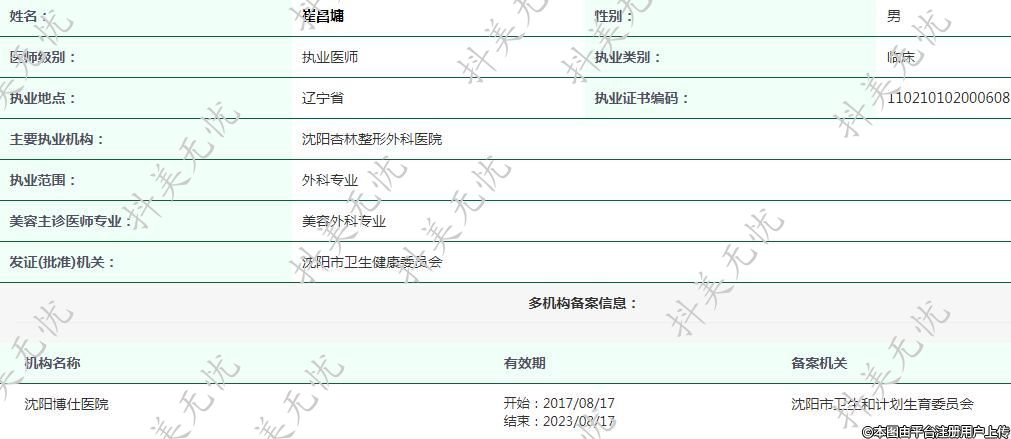 主要執(zhí)業(yè)機(jī)構(gòu):沈陽(yáng)杏林整形外科醫(yī)院