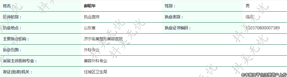 主要執(zhí)業(yè)機(jī)構(gòu):濟(jì)寧名美整形美容醫(yī)院