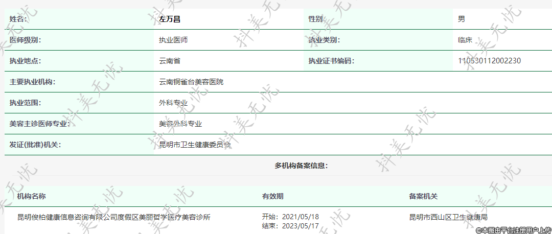 主要執(zhí)業(yè)機(jī)構(gòu):云南銅雀臺(tái)美容醫(yī)院