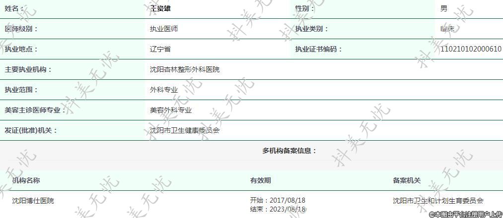 主要執(zhí)業(yè)機構(gòu):沈陽杏林整形外科醫(yī)院