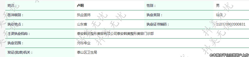 主要執(zhí)業(yè)機(jī)構(gòu):泰安韓美整形美容有限公司泰安韓美整形美容門診部