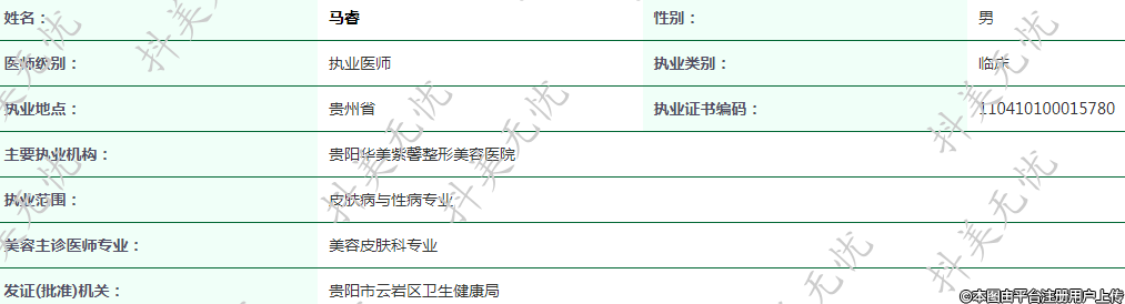 主要執(zhí)業(yè)機構(gòu):貴陽華美紫馨整形美容醫(yī)院