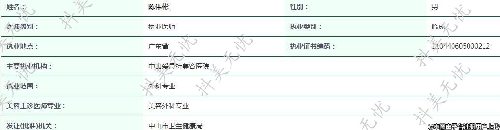 主要執(zhí)業(yè)機構(gòu):中山愛思特美容醫(yī)院