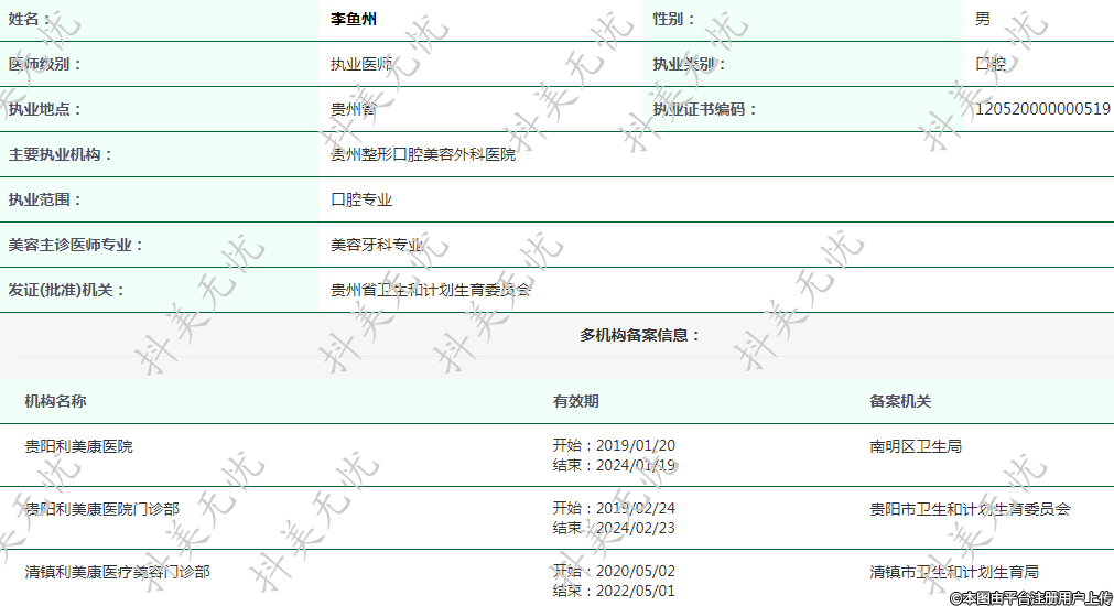 現(xiàn)任貴陽利美康醫(yī)院執(zhí)業(yè)醫(yī)師