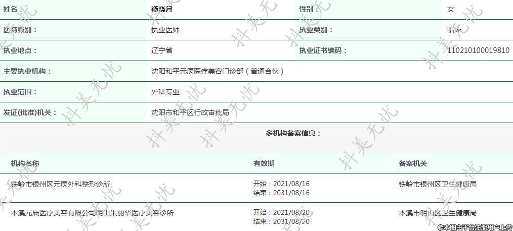 主要執(zhí)業(yè)機(jī)構(gòu):沈陽(yáng)和平元辰醫(yī)療美容門診部(普通合伙)
