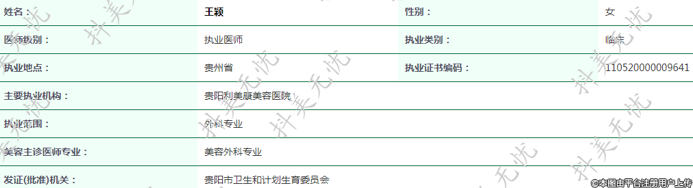 主要執(zhí)業(yè)機(jī)構(gòu):貴陽利美康美容醫(yī)院